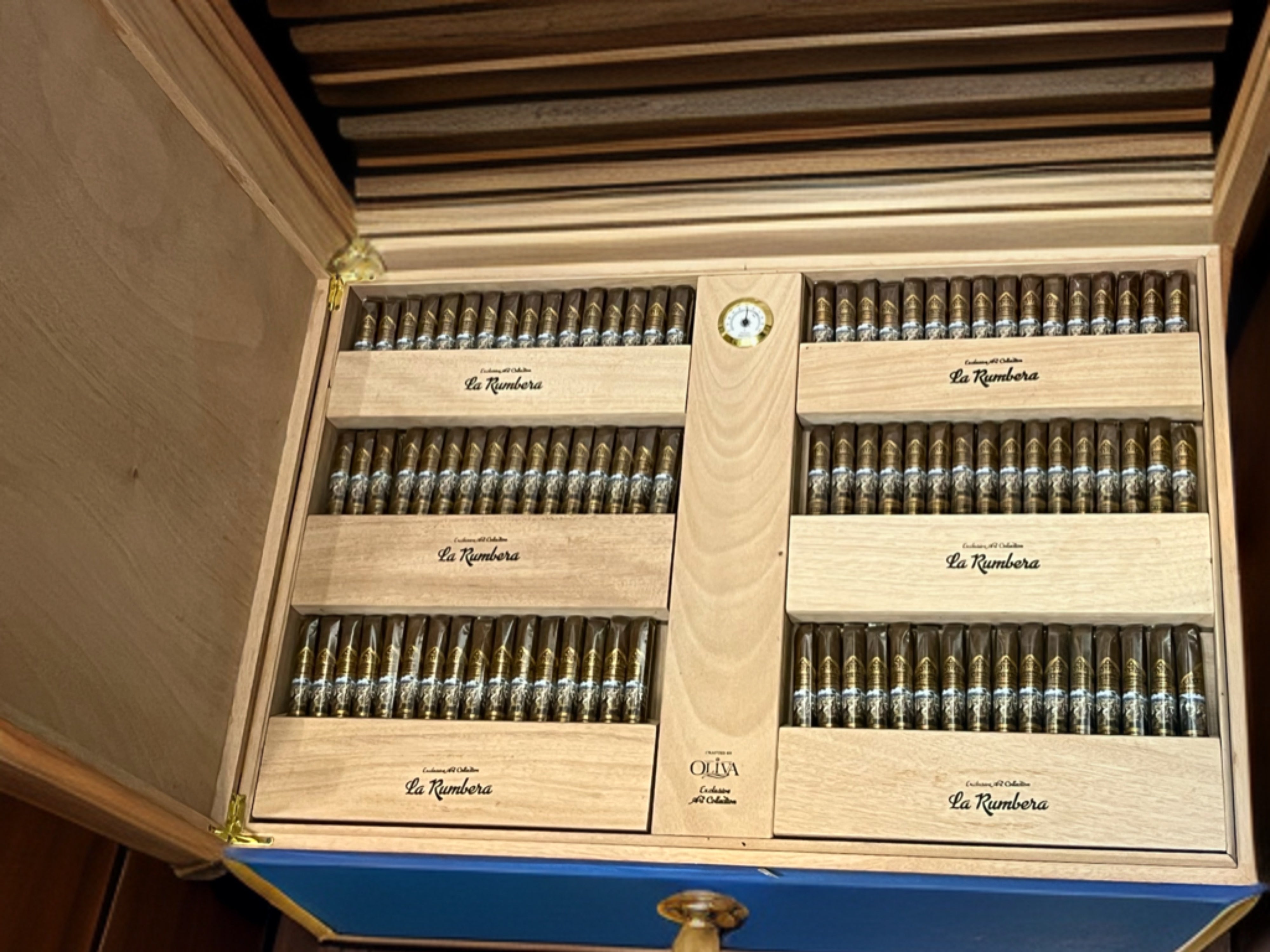 La Rumbera Humidors 1937 comes complete with a lighter, a cutter, and the exclusive La Rumbera tobacco collection. This collection is made with the finest aged selection by Oliva, blended by Oliva’s Cigar Master Blender, Pablo Rodríguez.