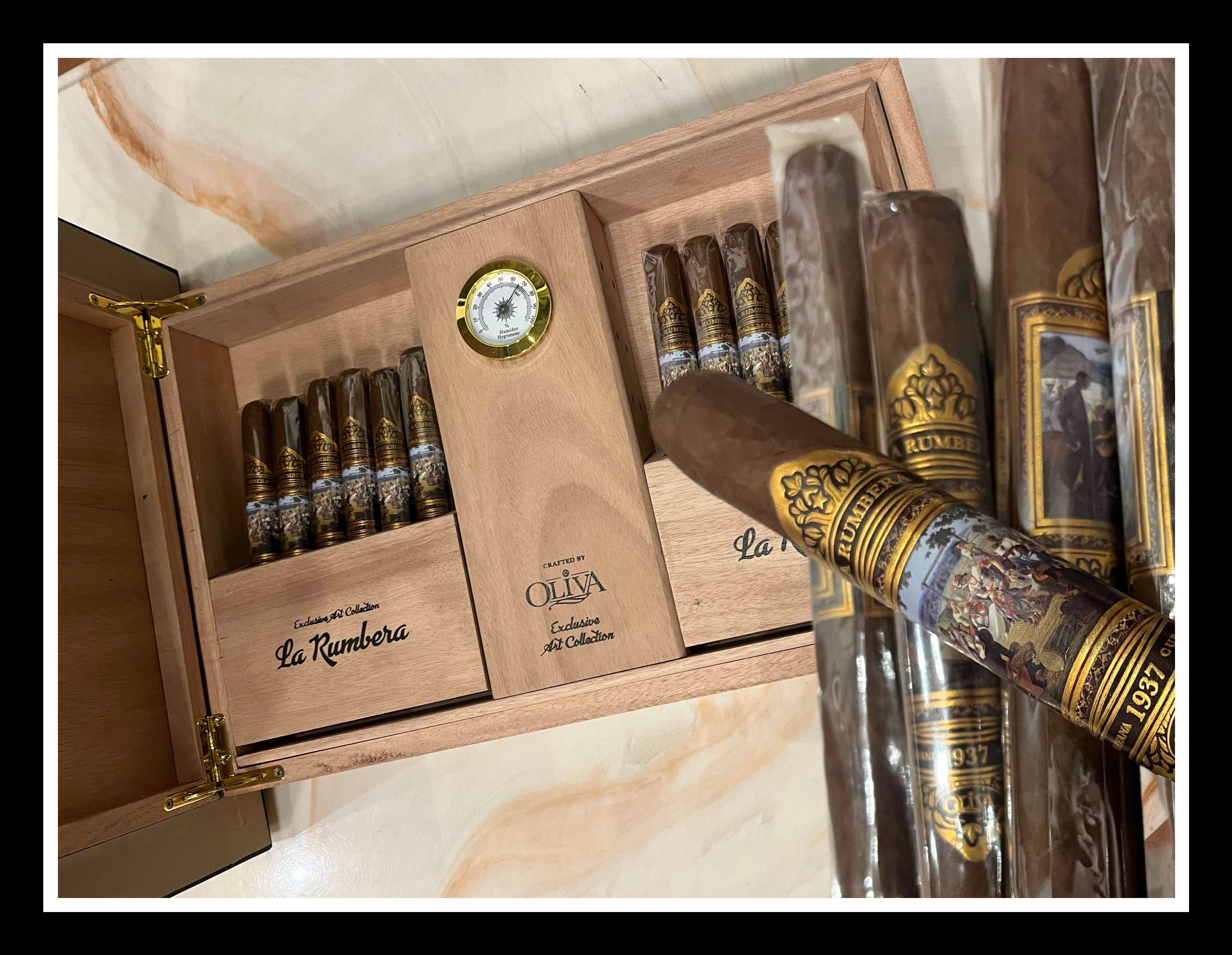 Additionally, La Rumbera Humidors 1937 comes complete with a lighter, a cutter, and the exclusive La Rumbera tobacco collection. This collection is made with the finest aged selection by Oliva, blended by Oliva’s Cigar Master Blender, Pablo Rodríguez.